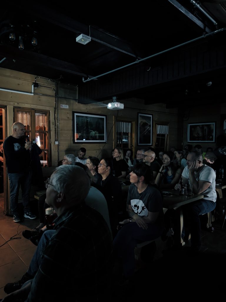 Następnie scenę przejął Wojciech Szatkowski, który w prelekcji „Poczciwe stare budy” przybliżył dzieje tatrzańskich schronisk – tych, które znamy i kochamy, oraz tych, które pozostały już tylko w opowieściach i pamięci dawnych pokoleń. To była niezwykła podróż przez czas, pełna wspomnień, anegdot i górskiego ducha.